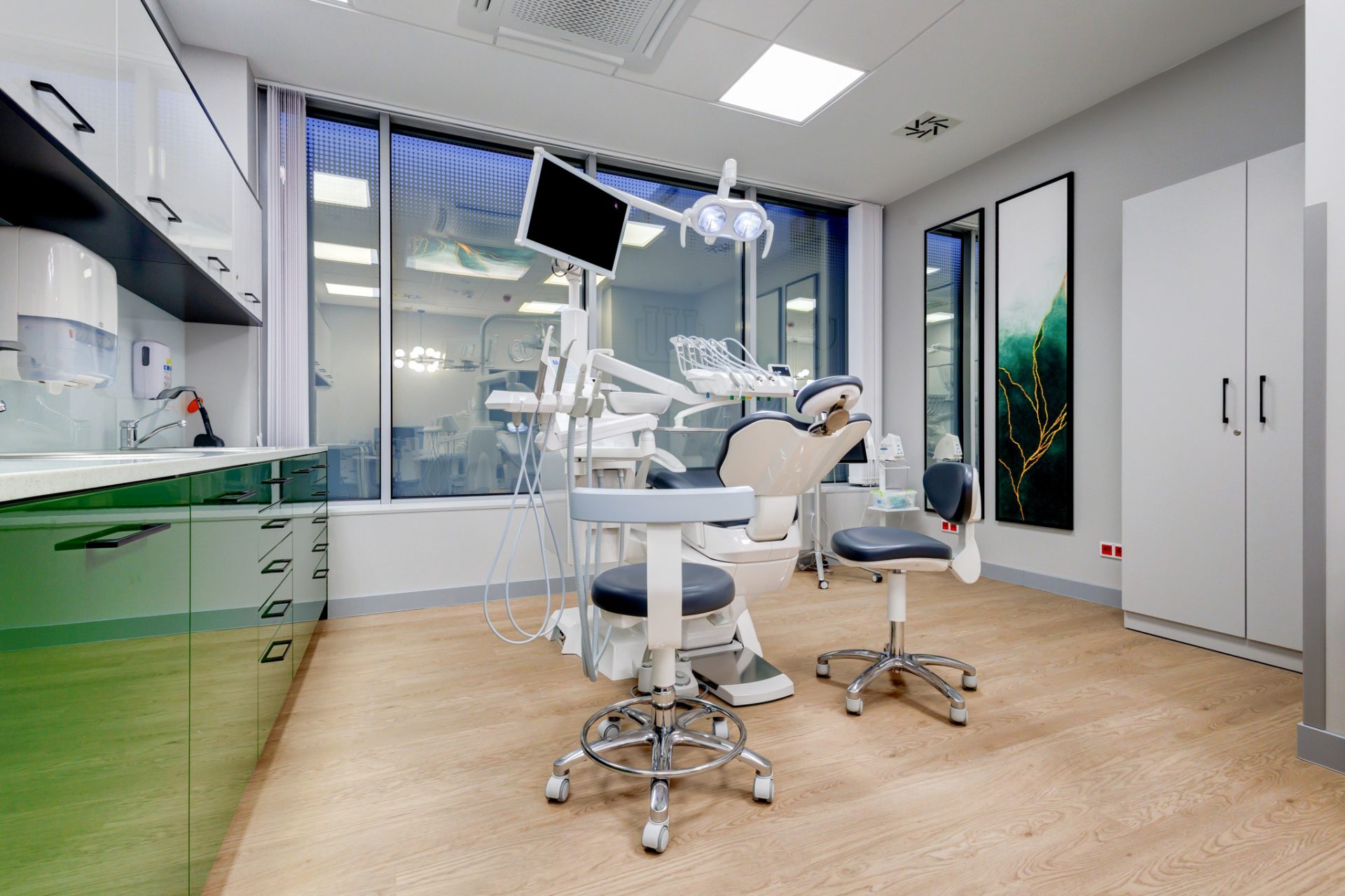 Od podstawowej opieki stomatologicznej po specjalistyczne zabiegi i diagnostykę dla dzieci i dorosłych. Do dyspozycji pacjentów przekazujemy część stomatologiczną na której realizujemy pełen zakres diagnostyki i leczenia. W 4 gabinetach stomatologicznych przyjmują: stomatolog zachowawczy, pedodonta (stomatolog dziecięcy), chirurg stomatologiczny, periodontolog, implantolog, protetyk, ortodonta, stomatolog estetyczny oraz higienistki stomatologiczne.