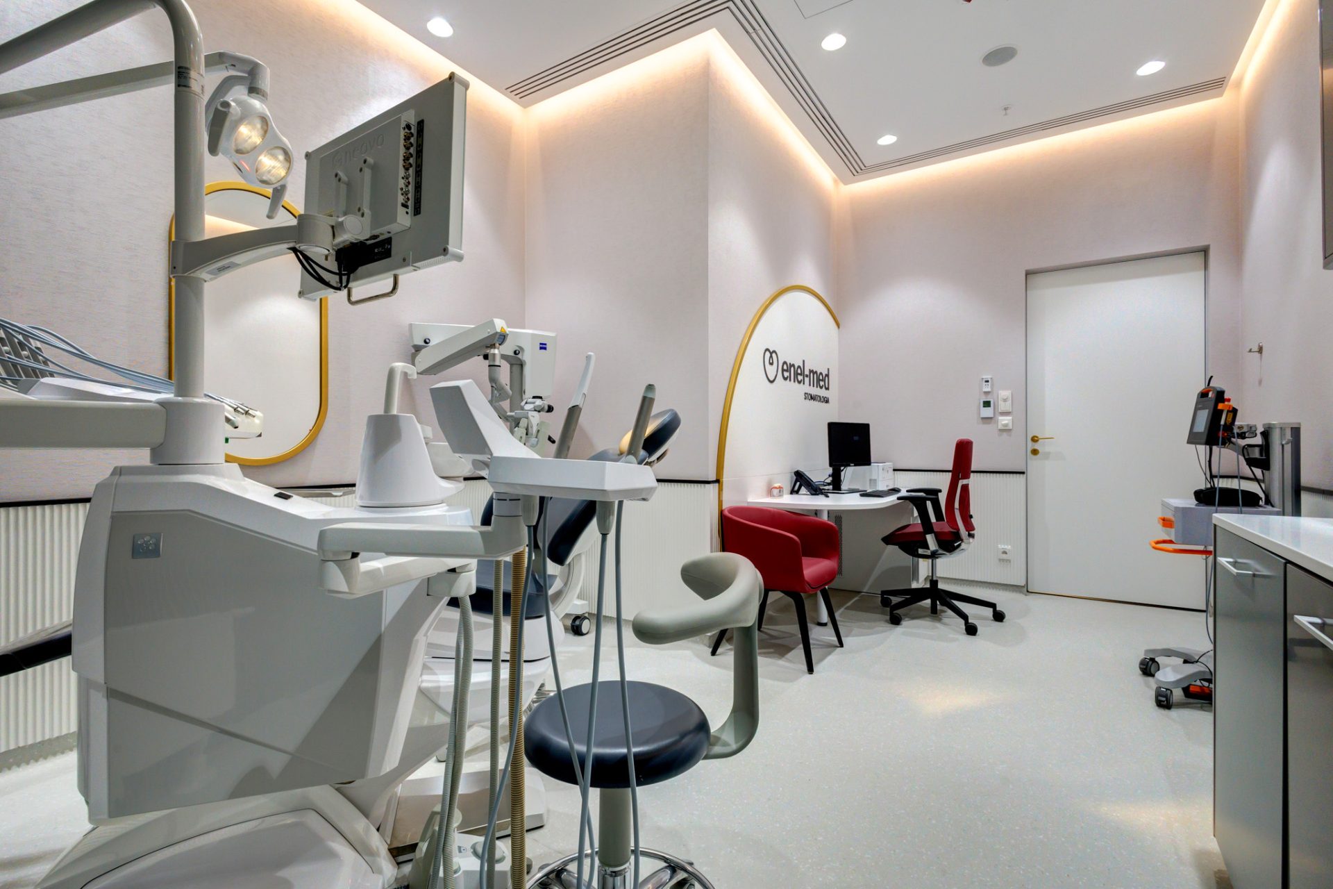 Klinika stomatologii enel-med jest w pełni dostosowana do potrzeb osób z niepełnosprawnością. Dla pełnego bezpieczeństwa i wygody Pacjentów w budynku Forest dostępne są windy, szerokie drzwi, komfortowe podjazdy i bezprogowe przejścia, a w samej Klinice – również toalety spełniające potrzeby osób z niepełnosprawnościami.